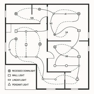 In a conventionally wired home, each light is hardwired to a switch. This requires longer wire runs, more wall boxes, and locks in decisions early—once drywall goes up, flexibility disappears.